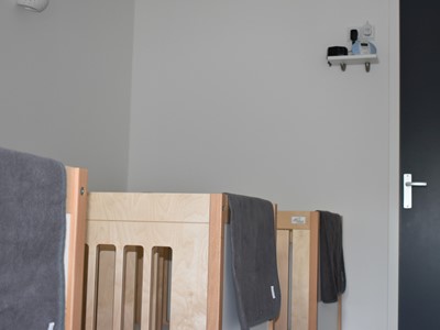 Alle slaapkamers zijn voorzien van een observatiesysteem welke in de groepen te volgen zijn door middel van een monitor. Dit beeld laat in kleur de slaapkamers zien en is ook met geluid te volgen.