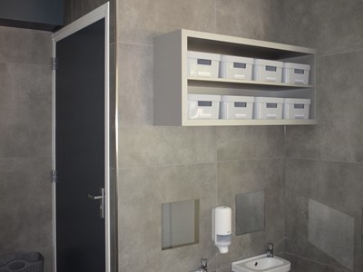 De tweede lift (wit) bevindt zich aan de achterzijde van het pand. Deze lift wordt voornamelijk gebruikt bij het naar bed brengen, of uit bed halen van kinderen en het verplaatsen van voorraad en boodschappen. Tevens wordt deze lift gebruikt door de medewerkers en kinderen om in de binnenspeelruimte te gaan spelen. Deze lift is geplaatst om de dagelijkse werkzaamheden van onze medewerksters te vergemakkelijken en te verlichten.