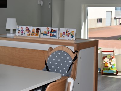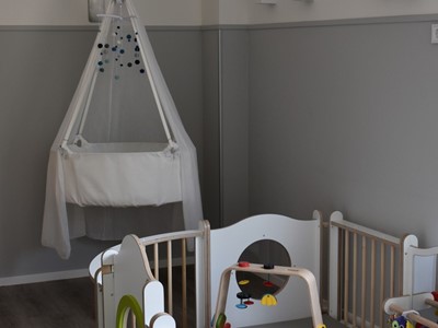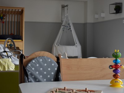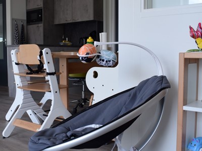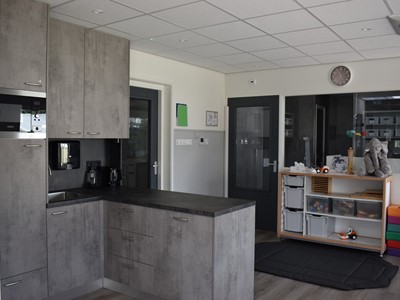 Er is een hoge en lage box voor de allerkleinste. Voor de oudere kinderen zijn er speelmaterialen aanwezig die de zintuigen van de kinderen prikkelen.
